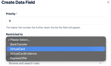 For Custom Fields for Virtual Card Transactions, you need to remember to select it, in ‘Required To”;