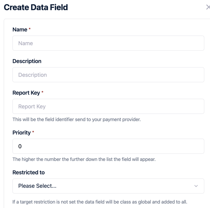 2) From the dashboard please go into ‘Settings’ from the menu on the left hand side, from this dropdown go to Custom Data Fields;