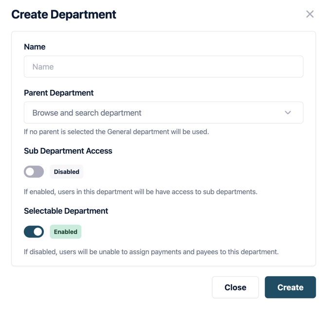 Please Note; If you would like a ‘default’ department that other departments revert back to or a shared point of view.