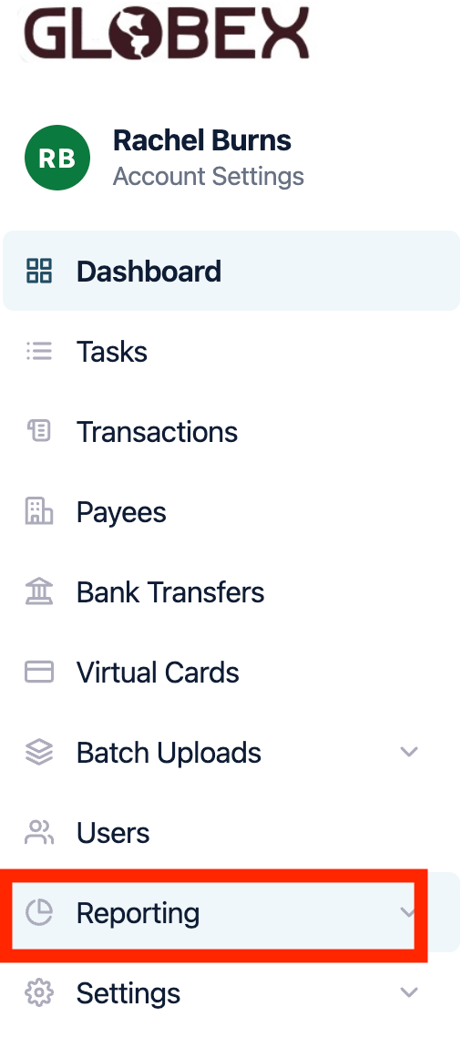 1. Log into your account from the dashboard, from the left hand side menu select ‘Reporting’.