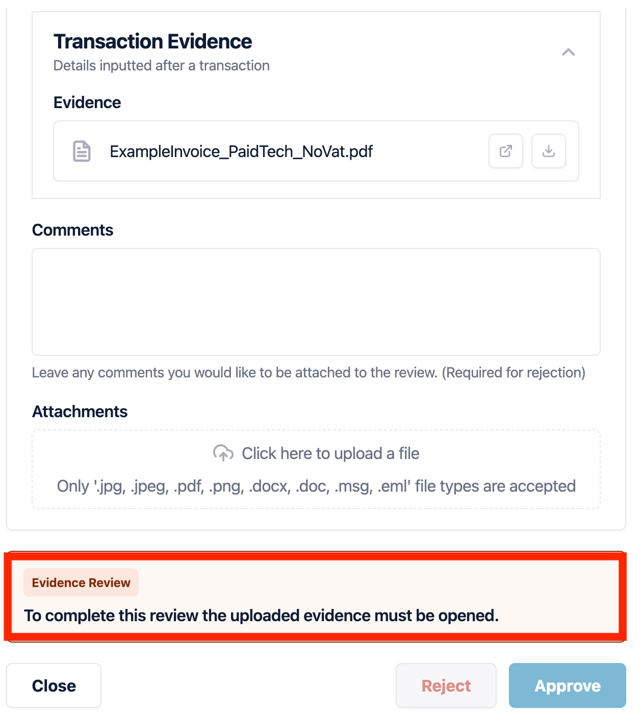 How to review and approve Transaction Evidence.