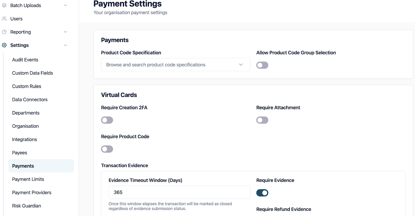 2) From the dashboard please go into ‘Settings’ from the menu on the left hand side, from this dropdown go to Payments;