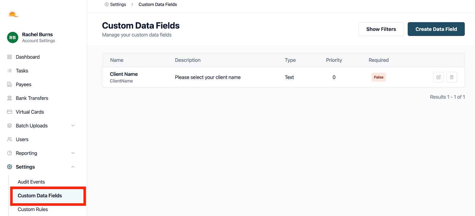 1. First we must ensure that the function has been switched on. Select "Custom Data" from the side menu.