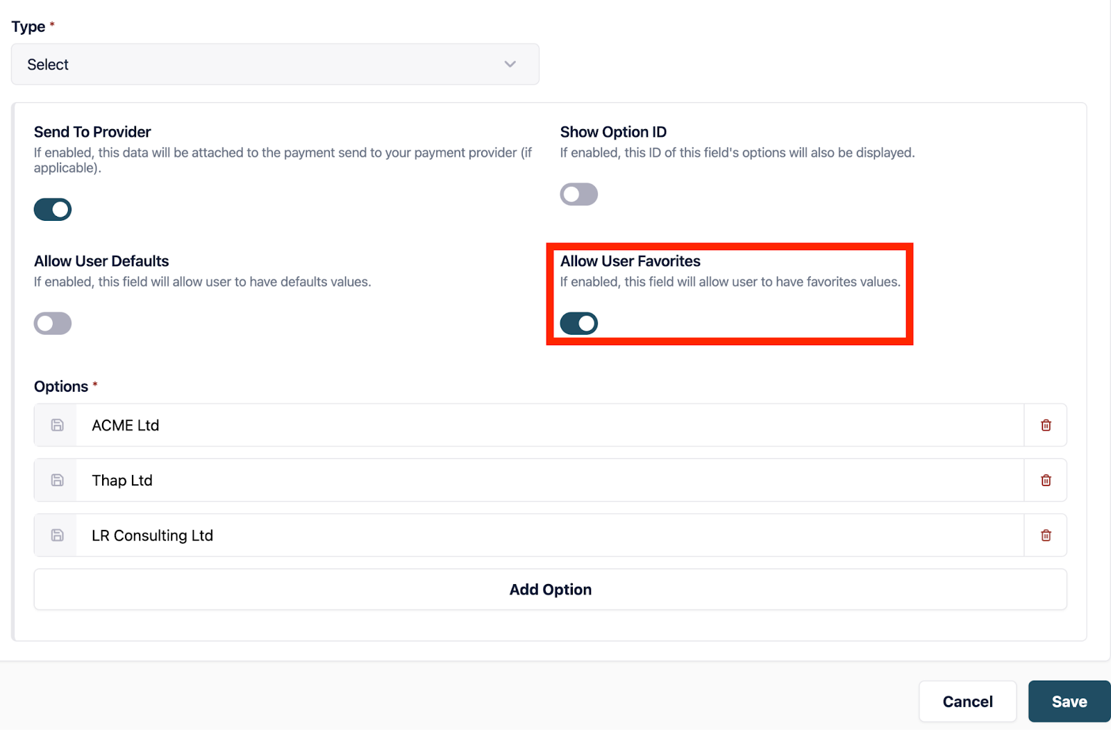 3. Please note there are two ways in which you can select favorites; Through your account and preferences or while creating a Virtual Card.