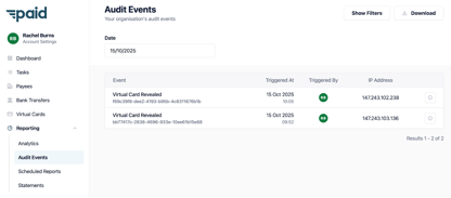 1) If you have the correct permissions you can go into ‘Reporting’ on the left hand side.2) From there you will need to select ‘Audit Events’;