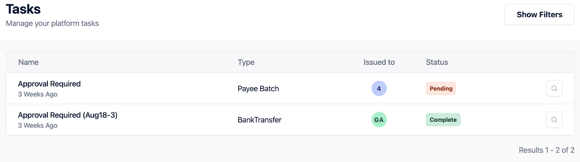 By clicking in the “Tasks” box in the main section of the dashboard;