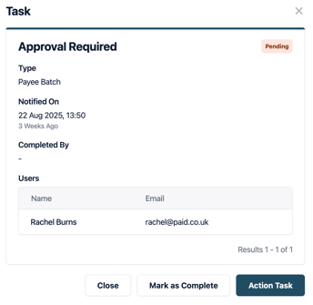 6) If a completed task hasn’t been marked as completed you can click “Mark as Complete” to manually complete the task.