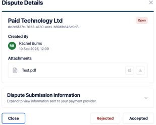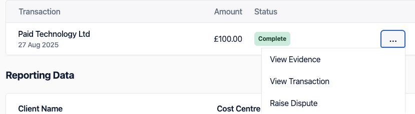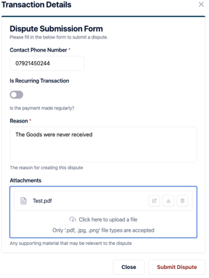 Please note raising a dispute is not to be used to provide evidence for the transaction, should this window be closed please contact your administrator.